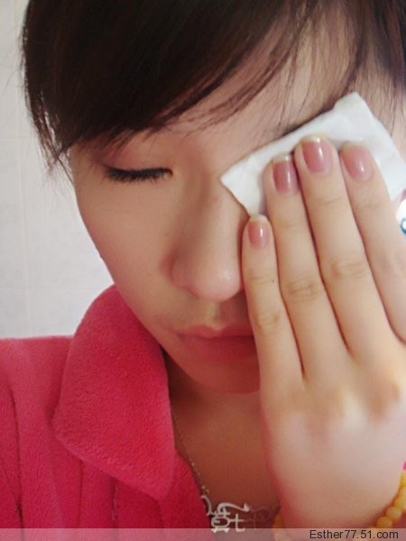 ★轻轻地将棉片,由眼头至眼尾卸除眼影