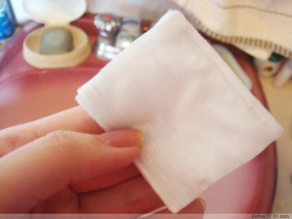 步骤1.用少量的水湿润完全展开的净肤棉。