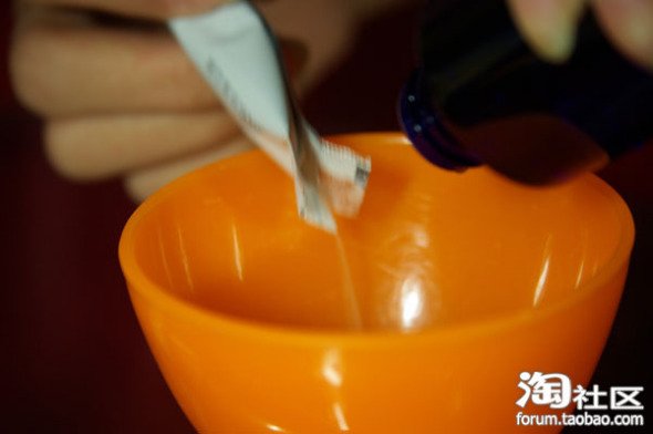 在面膜碗中加入大约1G水解胶原蛋白粉粉~