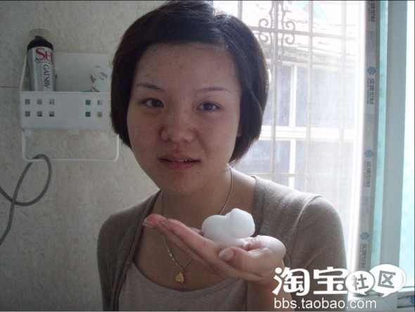 她正在洗脸哦~偶在旁边拍得不亦乐乎~丰富滴泡沫不会让你在洗脸滴过程中因为泡沫过少而使手跟脸产生过多滴摩擦哦