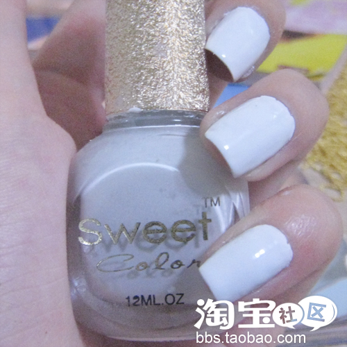 涂完底油以后,开始涂亚光白色的甲油了。涂的时候要涂均匀哦,很多时候亲们是不是都觉得甲油涂不均匀呢?