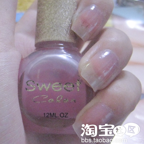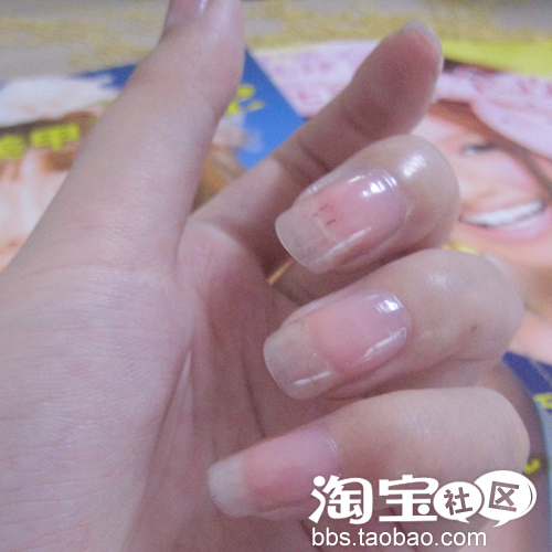 现在猫眯告诉你怎么涂甲油哦,首先涂薄薄的一层,把每个指甲都涂一遍,然后等半干的时候再涂第二层哦,第二层要涂厚一点。这样不仅可以显现出指甲油本身的颜色,而且也涂的很均匀呢。(好像扯开话题了- -继续做美甲)