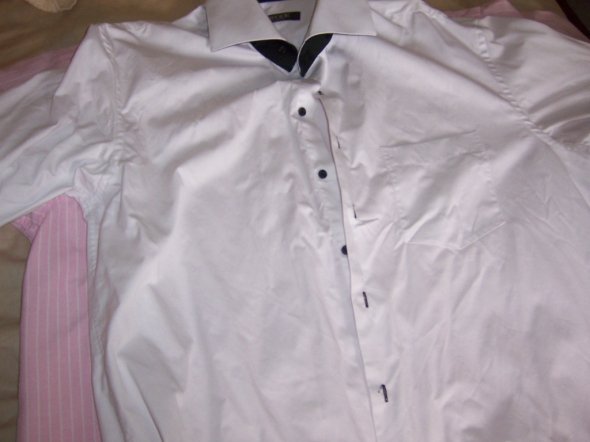 白色是现在的衬衣,粉色是以前的,差了17厘米吧。
