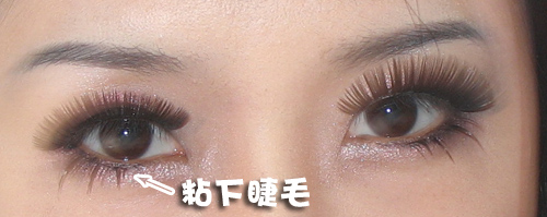 呵呵,画好下眼影以后。我们要做眼妆的收尾工作了!嘿嘿~~~~~粘下睫毛!
