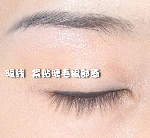 首先,是眼线。如果要看起来非常可爱的话,眼线要在中间画的比较宽,而且,不用拉长眼尾哦。拉长眼尾,会让人显得比较妩媚,娃娃要的就是那种单纯的感觉,所以就不用啦。