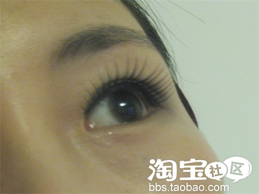 哈哈开始上了哦大家往下看看上完假睫毛后的效果哦!