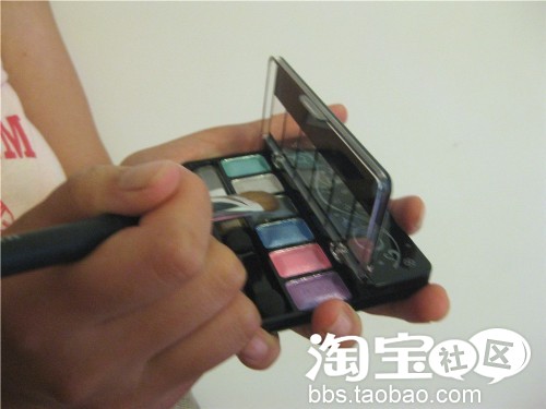 下面是眼影了,眼影上什么,整个妆面眼睛很重要哦,一定要把眼睛的妆化的干净哦,否则会感觉整个妆面很不清爽哦。我选了深色的,用黑色加蓝色,我比较喜欢这种冷色系的,大家可以自己根据自己喜欢,也可以根据自己的气质选择适合自己的眼影哦。(但一定要下眼睑也要画一点,用画上眼睑没用完的眼影由外向内带一笔就可以了,嘻嘻很简哦!)