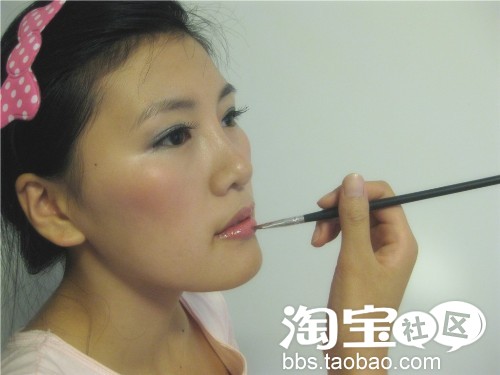腮红要看各位MM们的脸型了,圆脸就像打勾一样的打上,长脸就打个圆型,当然还像看你画的是什么样的妆哦,我是打了一个勾的,因为现在脸有一点肥了,嘻嘻,唇彩我就是随便涂的,哈哈整个妆已经好了哦,呵呵换件衣服给大家看看整体效果吧!