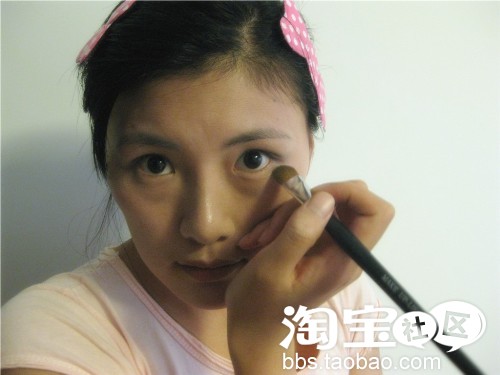 眼睛下面一定要上到下眼睑哦,不然会露这块没有上到粉很丑哦,脖子也要上点粉哦,不然会和面部一点都不协调的,记住哦。呵呵擦了点马上就不一样了吧,古话说的好一白遮三丑啊,要我说一白遮百丑啊,呵呵,大家往下看哦!