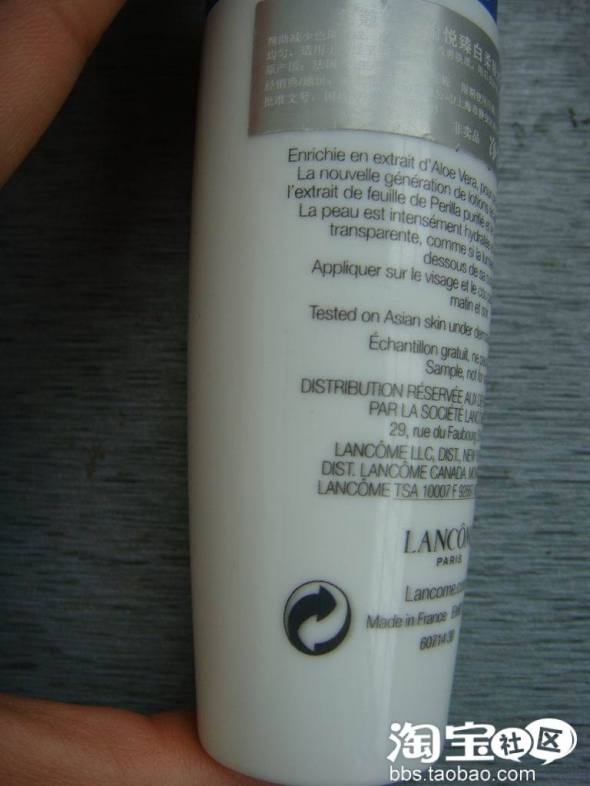 兰蔻的这个水假货瓶子不是这样的 (- -我拿货上次上当了一次~~)而且一般假货是不可能有兰蔻的中文标可以贴上的,撕下来再贴不太现实~