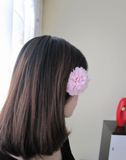 大功告成:戴上小花花 穿上小碎花的裙子 很清新的感觉。