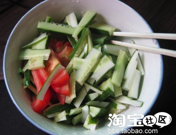 我真是条猪,这么热的天也这么能睡。。。 刷牙洗脸毕,去离家300米的小食摊买了一个茶叶蛋在拐弯去菜市场买了些黄瓜西红柿回来。刚拌好的,还没吃。给大家看看。呵呵
