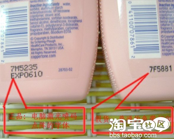 8.背部说明文字假货要比真货颜色深一些粗一些,一般只有通过两支真假的水宝宝放在一起才能看得出!