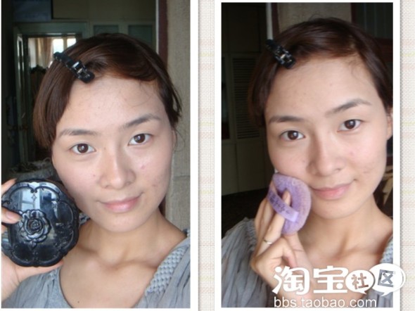 首先跟其它发贴的漂亮姐姐一样来张妆前妆后对比照。