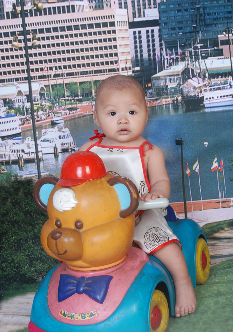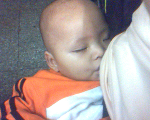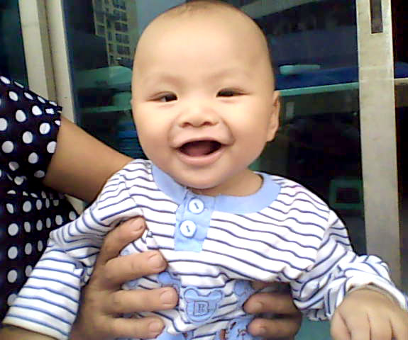 八个多月啦。。。我还在吃奶奶哦。。。妈妈说多吃点奶好。。嘻
