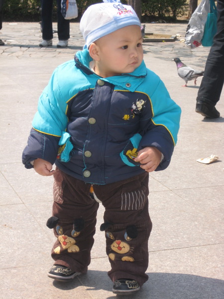 嘻嘻。。。小坏蛋的怪表情。。。后面是传统的风车和人家不要的旧房子。。。。。。