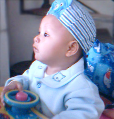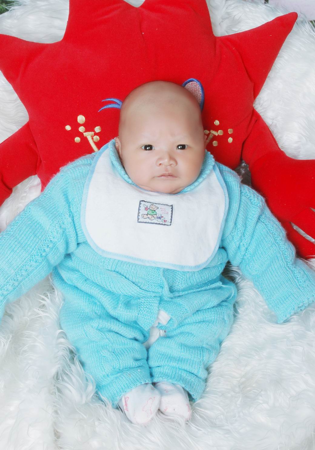 哈哈,满月啦。。。小毛衣是奶奶织的。。。小毛裤是妈妈织的。。。