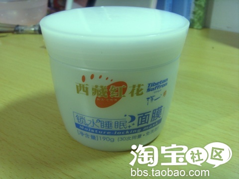 西藏红花睡眠面膜,在屈臣氏买的,这款补水效果还行,当时就觉得价格很便宜,不过这款面膜涂在脸上很粘,第一次不知道,涂了后去睡觉,第二天我的枕头毁了,后来都是睡觉前就跑去洗了,再睡,呵呵。