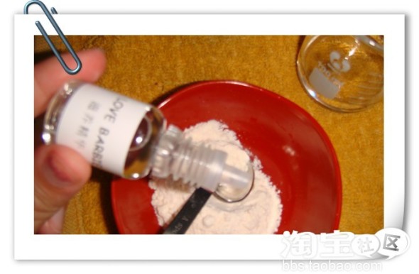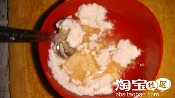1、将20G左右的面膜粉倒入一洁净的碗内,加入适量纯露或矿泉水。