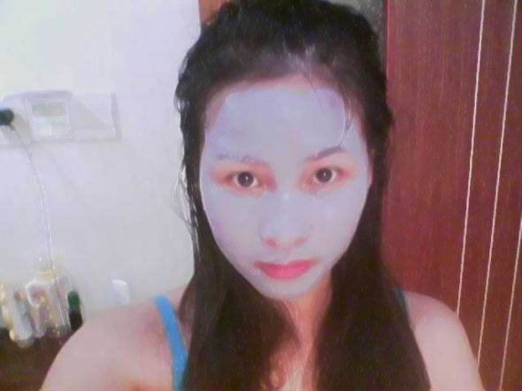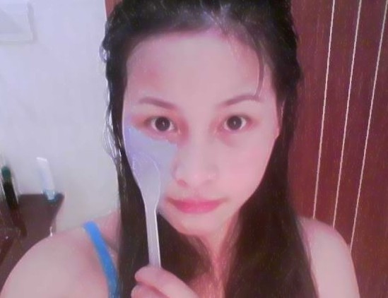 我开始涂喽,这款面膜是紫色的哦`xixi.