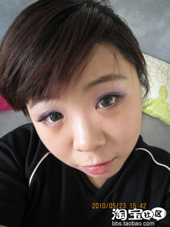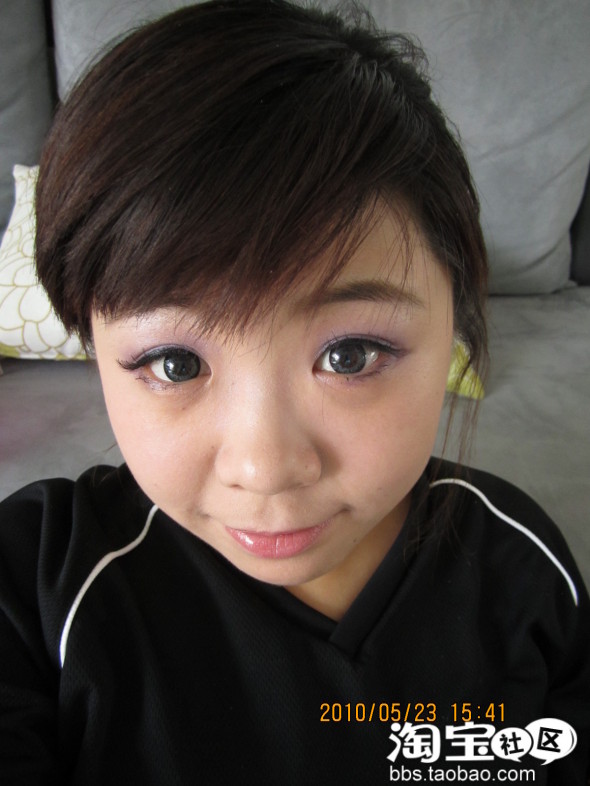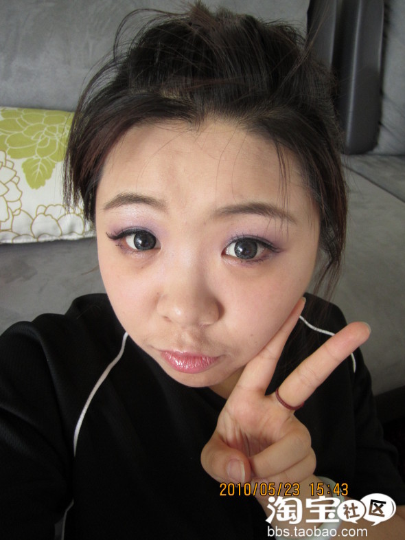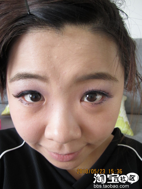 效果图··O(∩_∩)O哈哈~因为我皮肤比较好点,(自己偷笑一个)所以我就不用涂这个涂那个了·直接上妆了··下一步就是眼妆了··