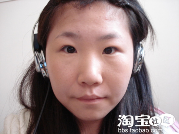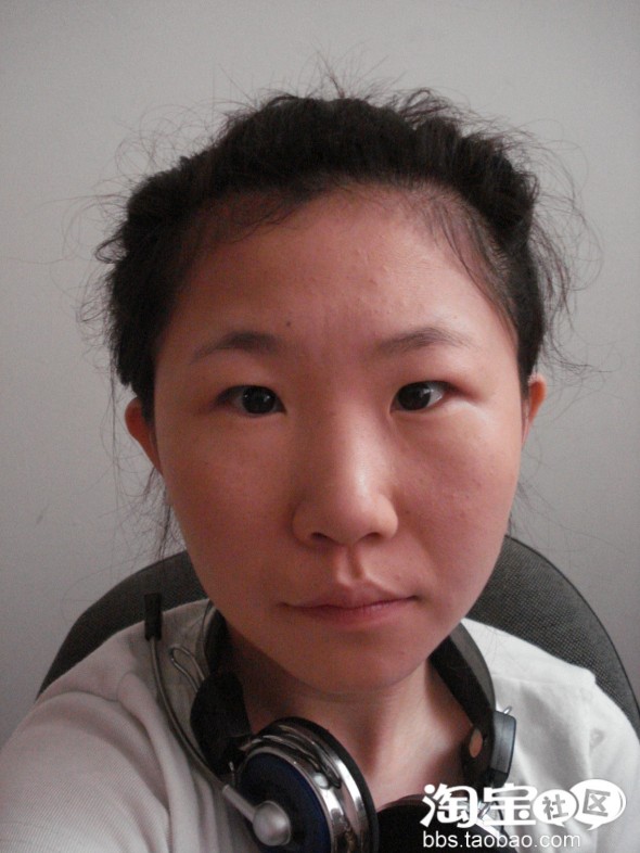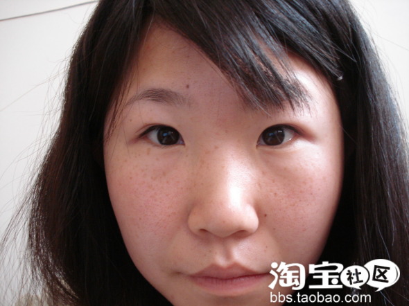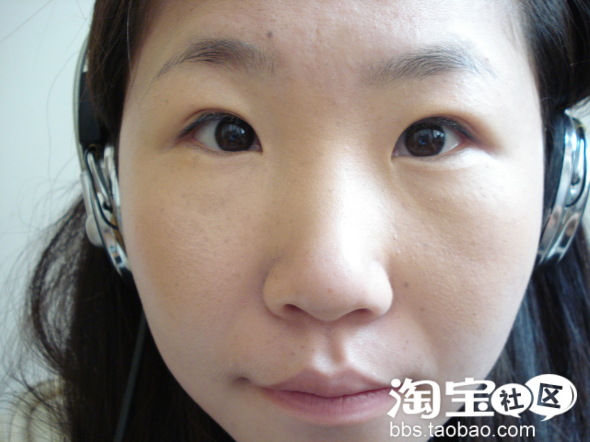 左右两边差不太多了。有人可能会说了,眼型怎么办呢?这就要靠眼线帮忙了。不过还不到时候。眼睛调整好了。开始我们的打粉底了