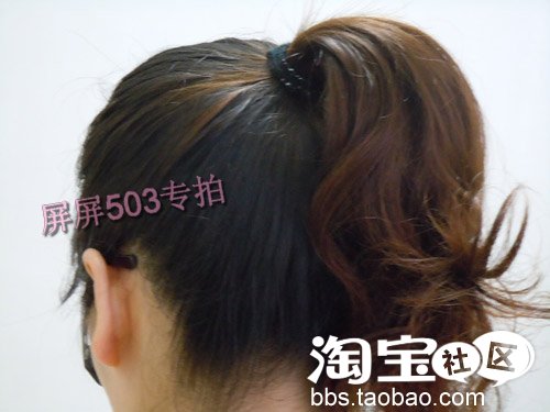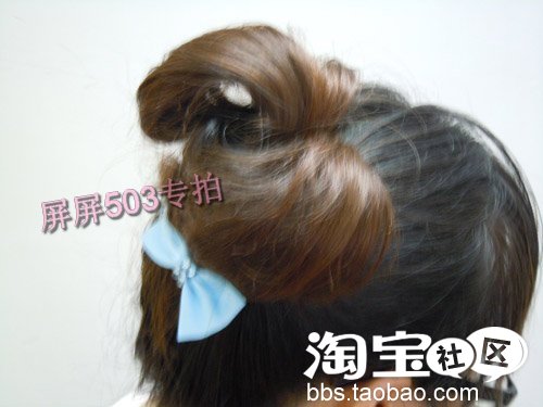 4.头发分成两半,压成花瓣型用晚妆黑夹子固定