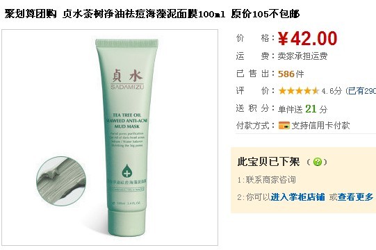 因为需要面膜,当看见这个时,毫不犹豫就拍下了,店家也送了很多小样,有乳有水,这个面膜是泥状的,很好推开,味道也很清淡,主要含有茶树精华,特别适合长痘痘的MM,我曾经和痘痘抗战了7年,终于现在有所改善了,用这个当日常保养还是不错的,可以帮助毛孔深层清洁。