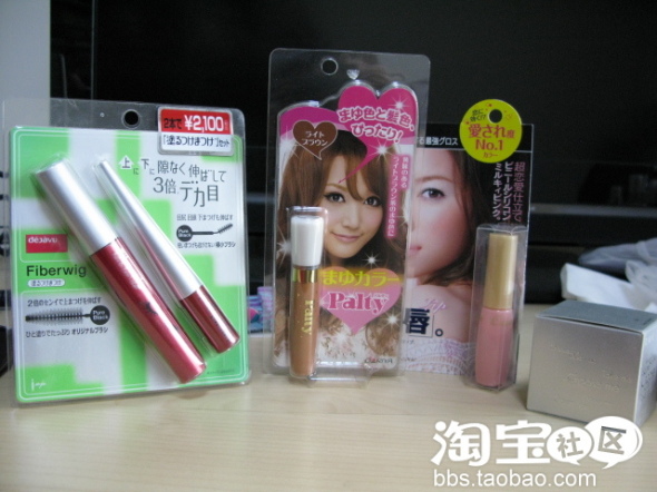呵呵,这些是新败的彩妆DD,从左至右依次是fiberwig睫毛膏,Palty染眉膏,sonyCP的唇彩,RMK水凝粉霜,败的东西不多,但是银子哗啦啦就没了。。。。。。。