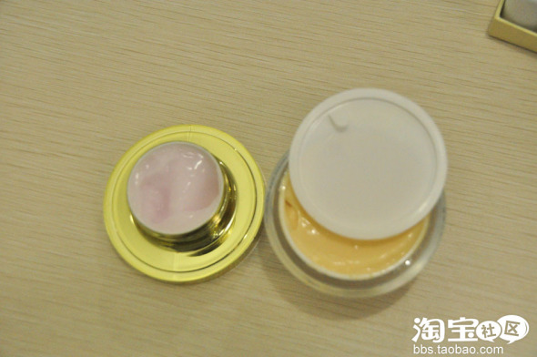 这款眼霜是分上下两层,上面是粉色的那个是早上用的,下面那个蛋黄色的是晚上用的,都具有保湿,修护眼部组织的功效,就是比较喜欢这种眼部护肤的概念,很特别,而且量也挺大的,早上的眼霜是15克,晚上用的是40克,相当于两支眼霜了,省不少银子呀。