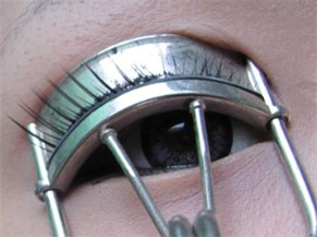 再用睫毛夹夹出卷翘感(和自己的睫毛一起夹)