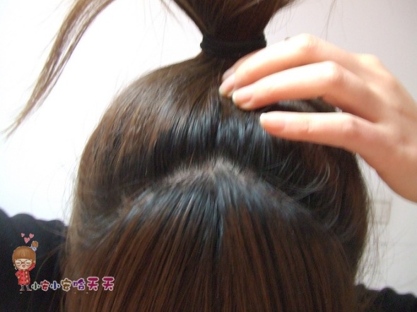 一直到发尾的部分 然后把发尾塞进皮筋里固定