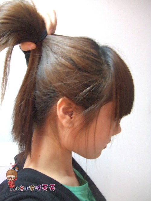首先还是梳一个马尾 高点比较好 看起来活泼一些