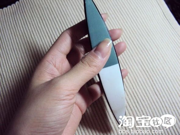 注意:要一个方向的磨,不能来回左右磨形状,否则指甲很容易变成2层,变得脆弱!