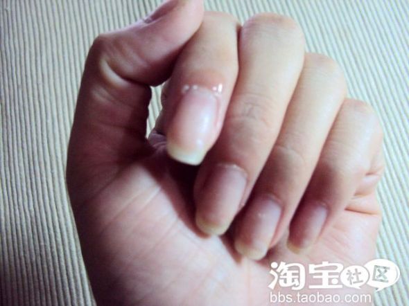 卸掉指甲油后的样子,很明显~指甲上有很多死皮