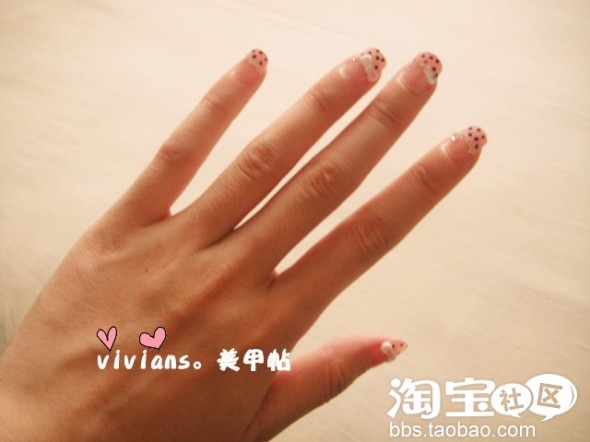 最后涂上亮油就完成啦~~vivians的手不好看内~干瘦而且爆血管~相信MM们自己做的会比我的好看很多哦