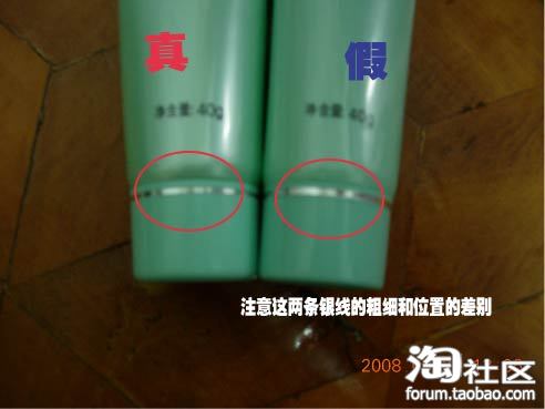 高中在一次偶然的机会下买了第一支完美芦荟胶,从此就爱上了它了,一直离不开了,长痘痘了要用,手划破了要用,没有爽肤水的时候就拿它来代替……算下来用了也有4,5年的时间了,出门都会随身带着的,开始一直是在专卖店里买的,38一支,价钱不算便宜,后来在我家附近开了一家化妆品店,也有卖完美芦荟胶了,20一支,感觉还是挺划算,回家的时候买2支就够我在学校一个学期用的了。第一次在那家店买的时候还是很怕会是假的,于是对着以前在专柜买空瓶子在各个地方对比,在网上找帖子,确认的确是没有问题了以后才敢放心大胆的使用,后来一次又去他们家店里买,因为是晚上也就没有仔细看,拿回家拆开之后就发现有点不对了,盖子拧开后就看到封口的锡纸歪在了一边,心里就有点别扭,想是大批生产,可能难免会有粗糙的时候,随后挤了一些摸在了脸上,粘粘的感觉,跟以前买的真的是一点都不一样,摸了好半天都还是没吸收,心里就更难受了,就拿出以前用空的来对比, 左对对右对对,天啊~~让我买到假货了!!真的是跟网上说的假货一模一样的,心里那个哭啊