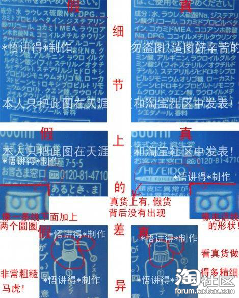 ,后来又发现,瓶子下面资生堂的标志上竟然有一块很丑的白点,可是月宝买的那家店铺有7天屋里有退款,还保证是正品,所以不太相信,可是偶在朋友家的发现,才让偶确定了这是假货~下面上假货的图~~
