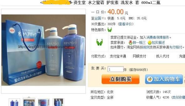 几天前月宝在淘宝上网购了资生堂水之密语的洗发水和护发素,说是日本原产的哦,加上邮费共80元,偶心里可开心,跟妈妈炫耀滴说,看看,多便宜,嘿嘿