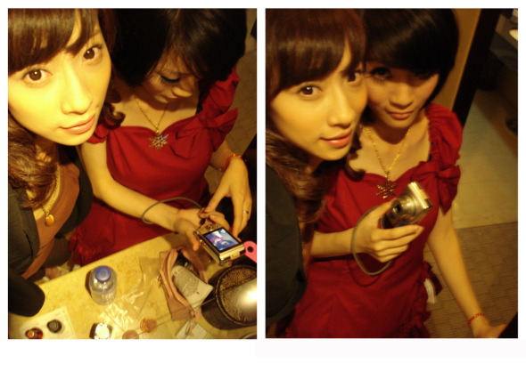 妆前的小唐和niki~赶紧拍下吧~一会儿就会有大转变了哦~