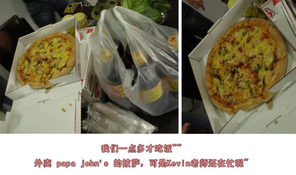 看着小唐一边吃pizza一边跑过来拿相机,我们都笑翻了~