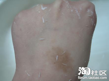 挤出来像是牛奶的样子,呵呵,在手上打匀,等它快干了再搓会比较好。