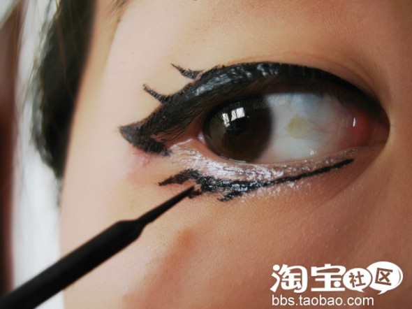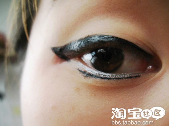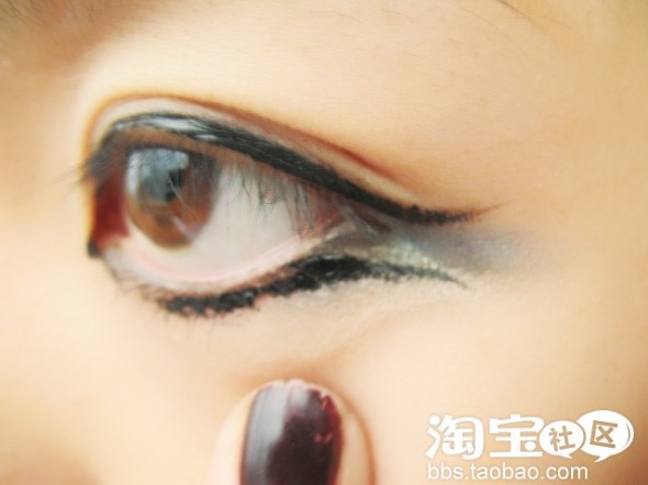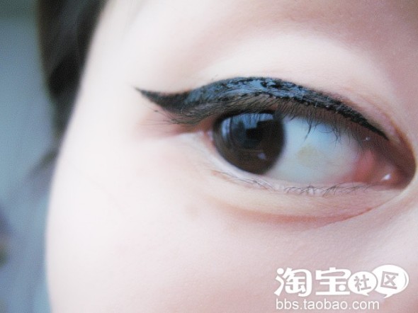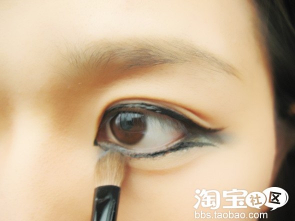 眼尾部 沿线拉长一些 这样显得比较妩媚啦