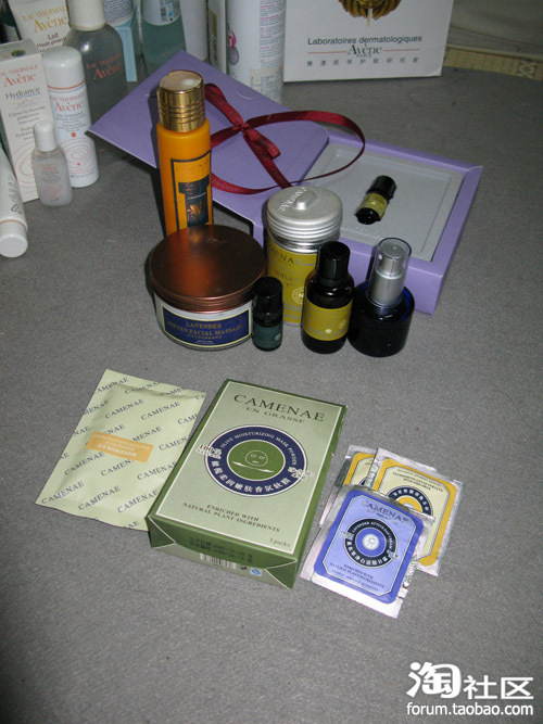 后排紫色盒:09年生日家美乐送的复方精油,好象是10ml的吧,美白的。和我那支大的一样。还有一块新的玫瑰面膜,给我用掉了。感觉还OK,那块面膜。精油也不错,味道也还行。晚上用了睡觉蛮舒服的。精油是个好东西~我一直爱用。不过将来要怀有BB时,就得暂停了~~~呵呵