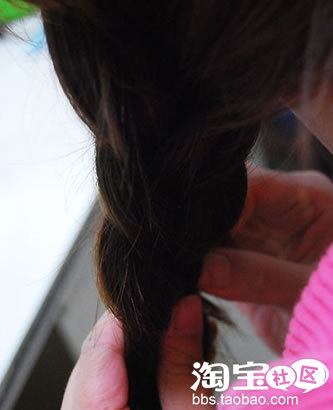 第一步:编的时候要注意手法,要朝着自己身体外的方向编哦,这样辫子才会有漂亮的卷曲感!