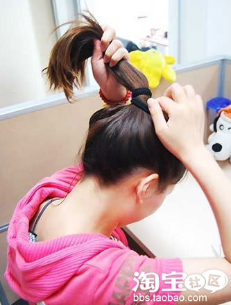 第二步:将马尾如图平均的分散开,注意分散时发量要均匀。