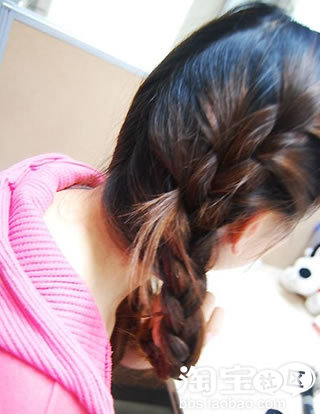 第二步:编完辫子后,将辫子随意的抽出几丝,让辫子看起来松松垮垮的,这样看起来既随意又时尚。