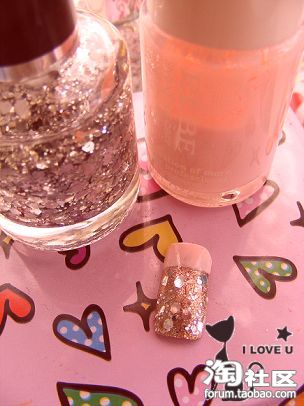 然後是裝飾(散裝的透明彩色桃心亮片和金絲亮片畫線甲油)