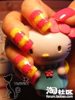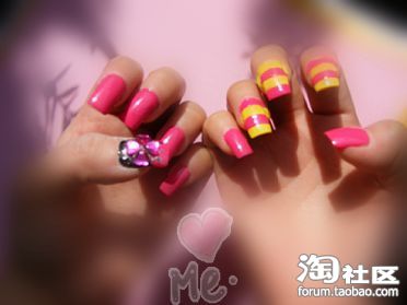 所有甲油的顏色涂完後待甲油乾透后就可以做自己喜歡的圖案了,用膠水黏貼就OK了。