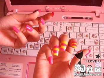 或是先涂好甲油做好花紋后在黏貼甲片在自己指甲上。